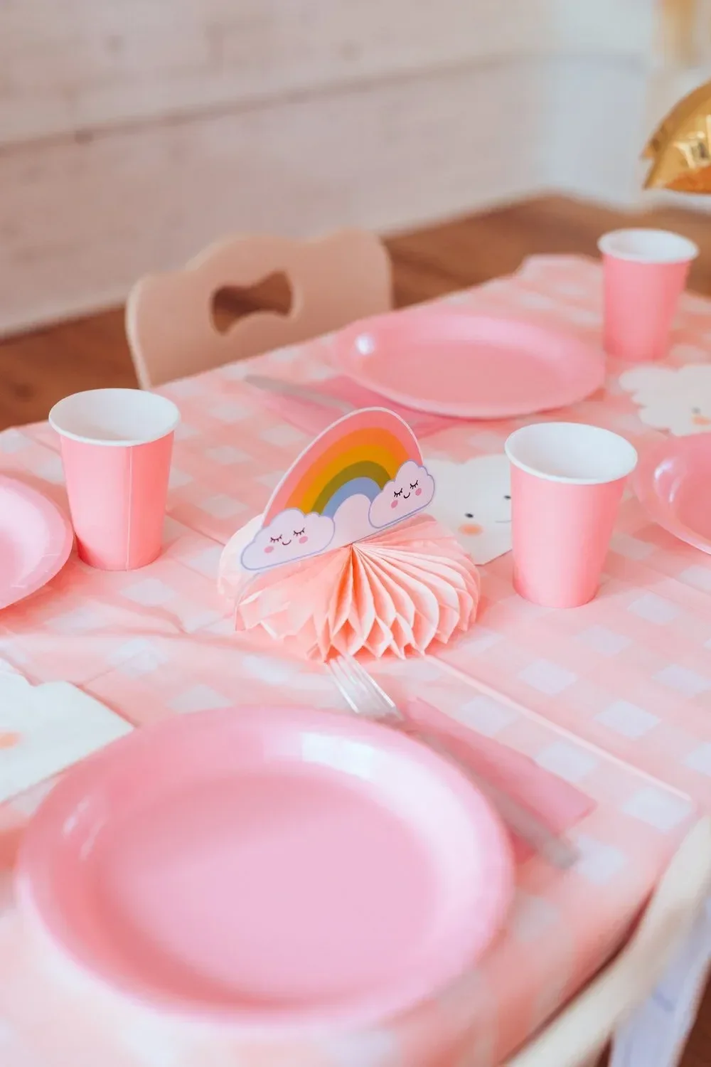 Pink and white (with rainbow decor)